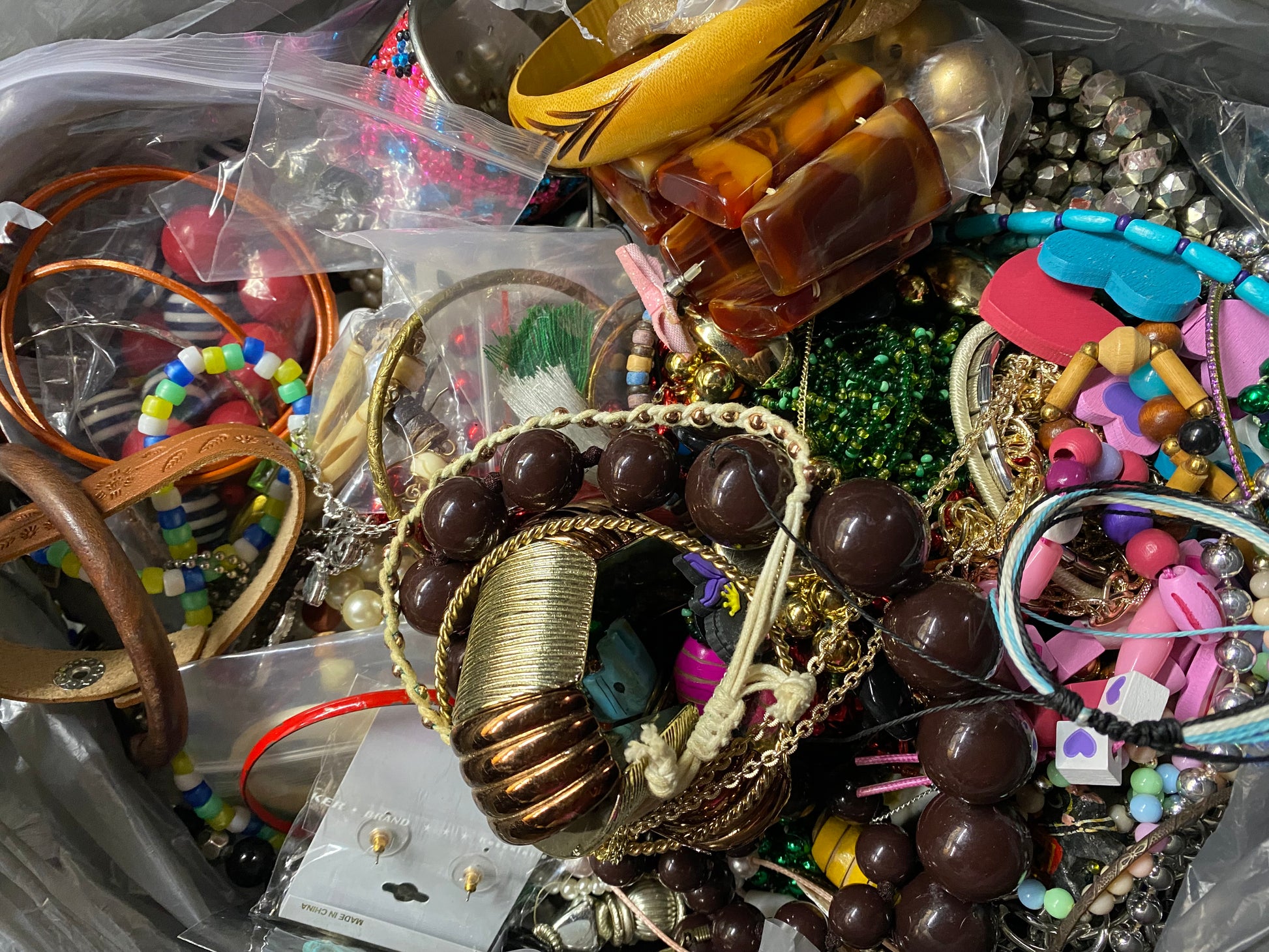 Mix of wearable, non wearable and craft. This is just everything we don’t keep. JEWELRY IS NOT CLEAN.