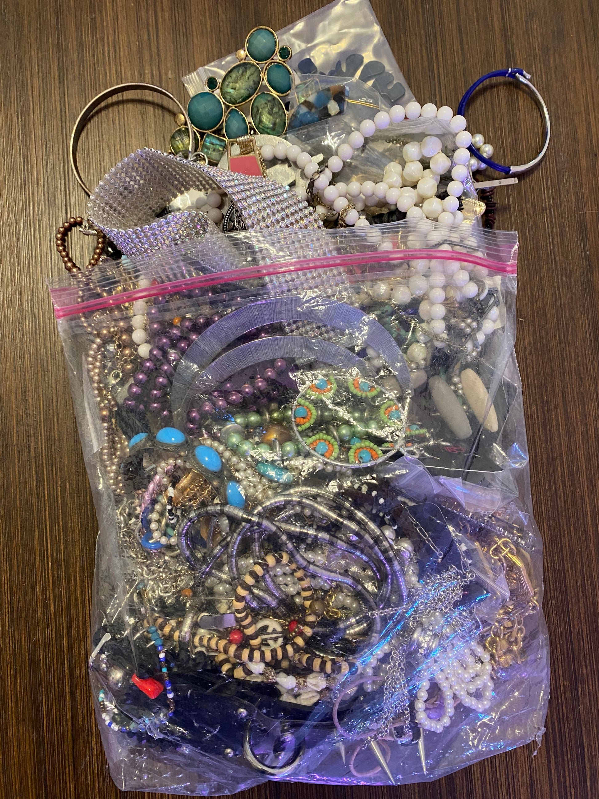 Mix of wearable, non wearable and craft. This is just everything we don’t keep. JEWELRY IS NOT CLEAN.