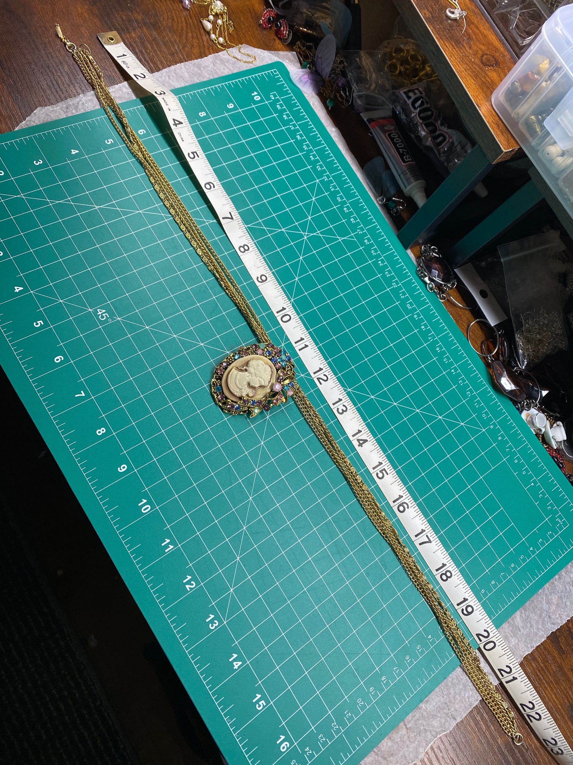 Handmade with repurposed jewelry. Can be taken apart and used as a brooch. Color most accurate in last picture.