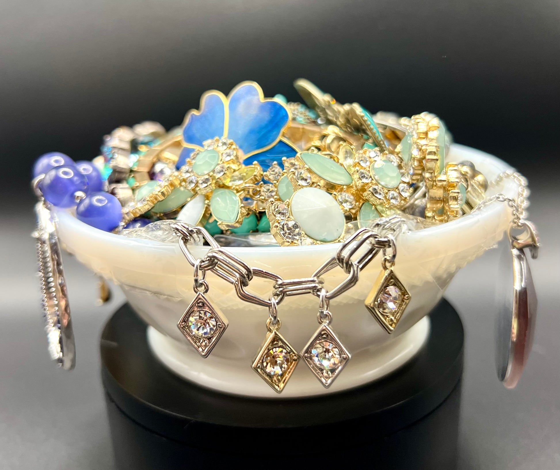Unwrap the thrill of gorgeous jewelry with our hand-inspected and packed Jewelry JAR! Each jar is filled to the brim with an exciting variety of earrings, bracelets, necklaces, and rings – no two jars are exactly alike!