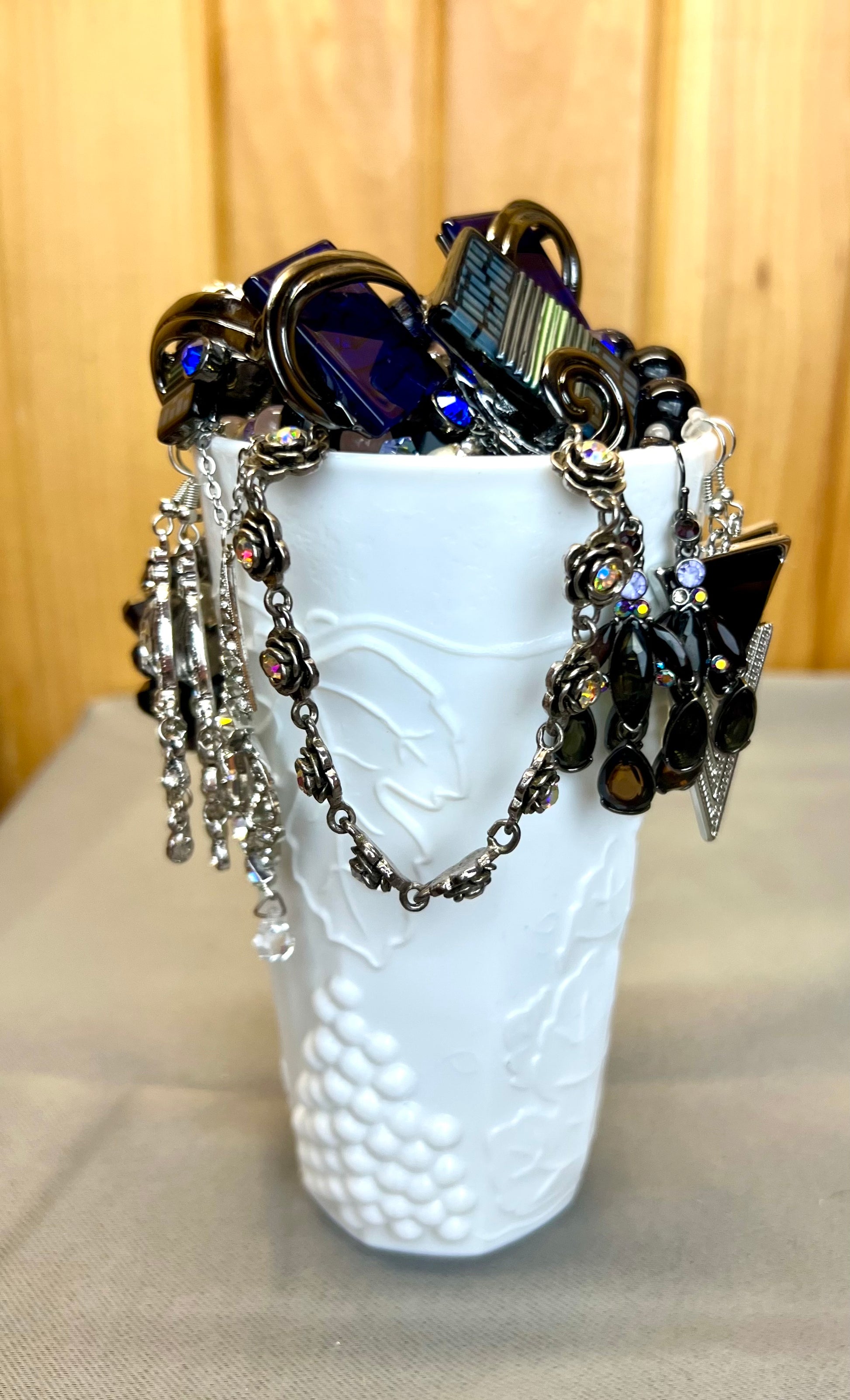 Unwrap the thrill of gorgeous jewelry with our hand-inspected and packed Jewelry JAR! Each jar is filled to the brim with an exciting variety of earrings, bracelets, necklaces, and rings – no two jars are exactly alike!