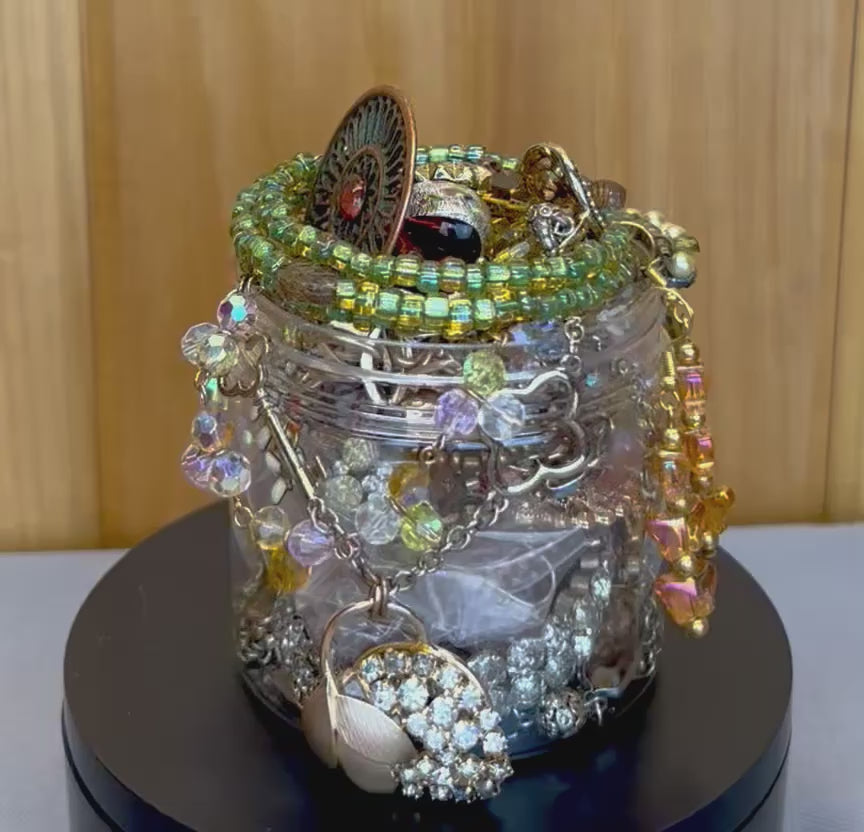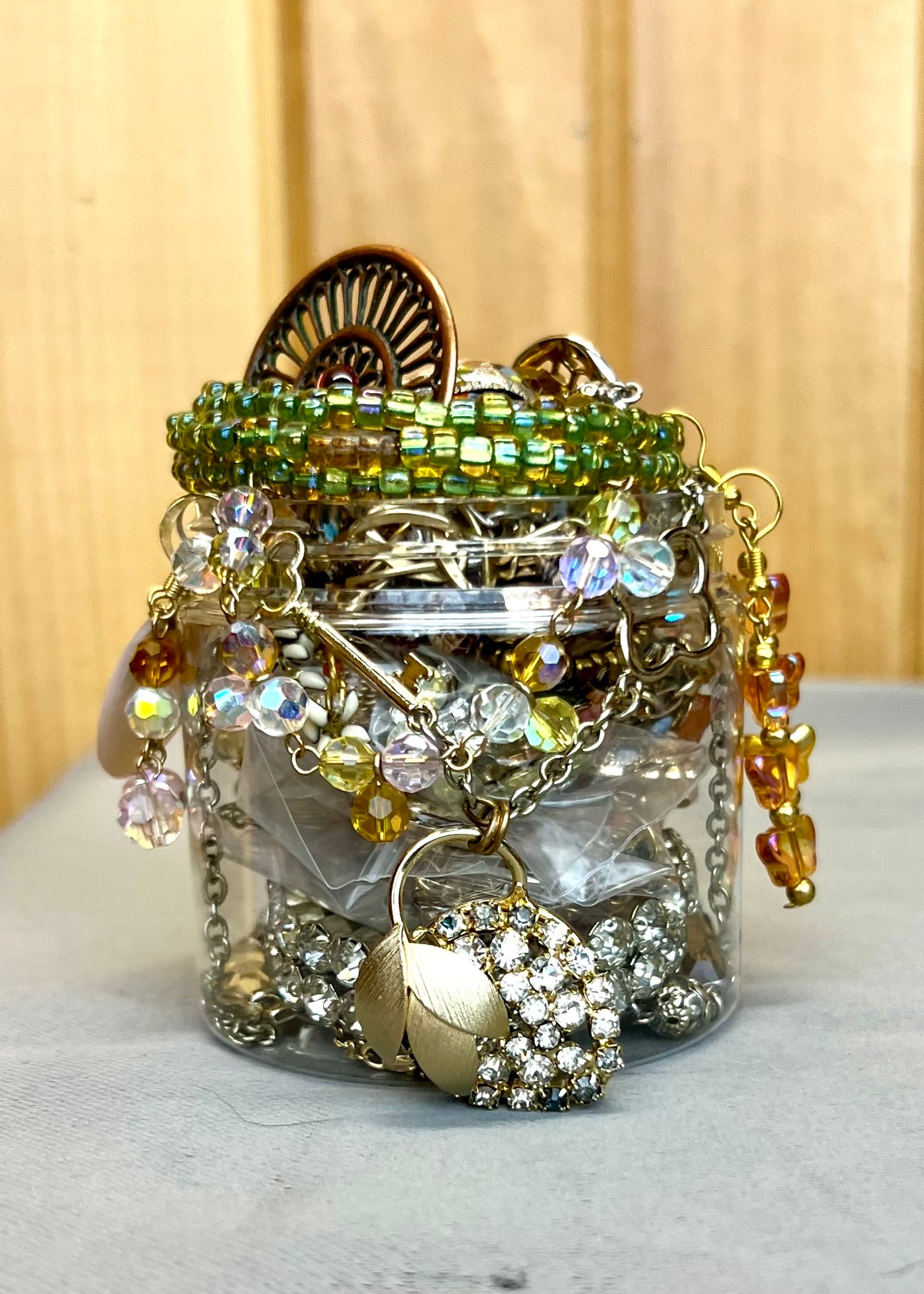 Unwrap the thrill of gorgeous jewelry with our hand-inspected and packed Jewelry JAR! Each jar is filled to the brim with an exciting variety of earrings, bracelets, necklaces, and rings – no two jars are exactly alike!