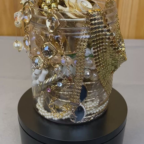 Unwrap the thrill of gorgeous jewelry with our hand-inspected and packed Mystery Jewelry JAR! Each jar is filled to the brim with an exciting variety of earrings, bracelets, necklaces, and rings – no two jars are exactly alike!
