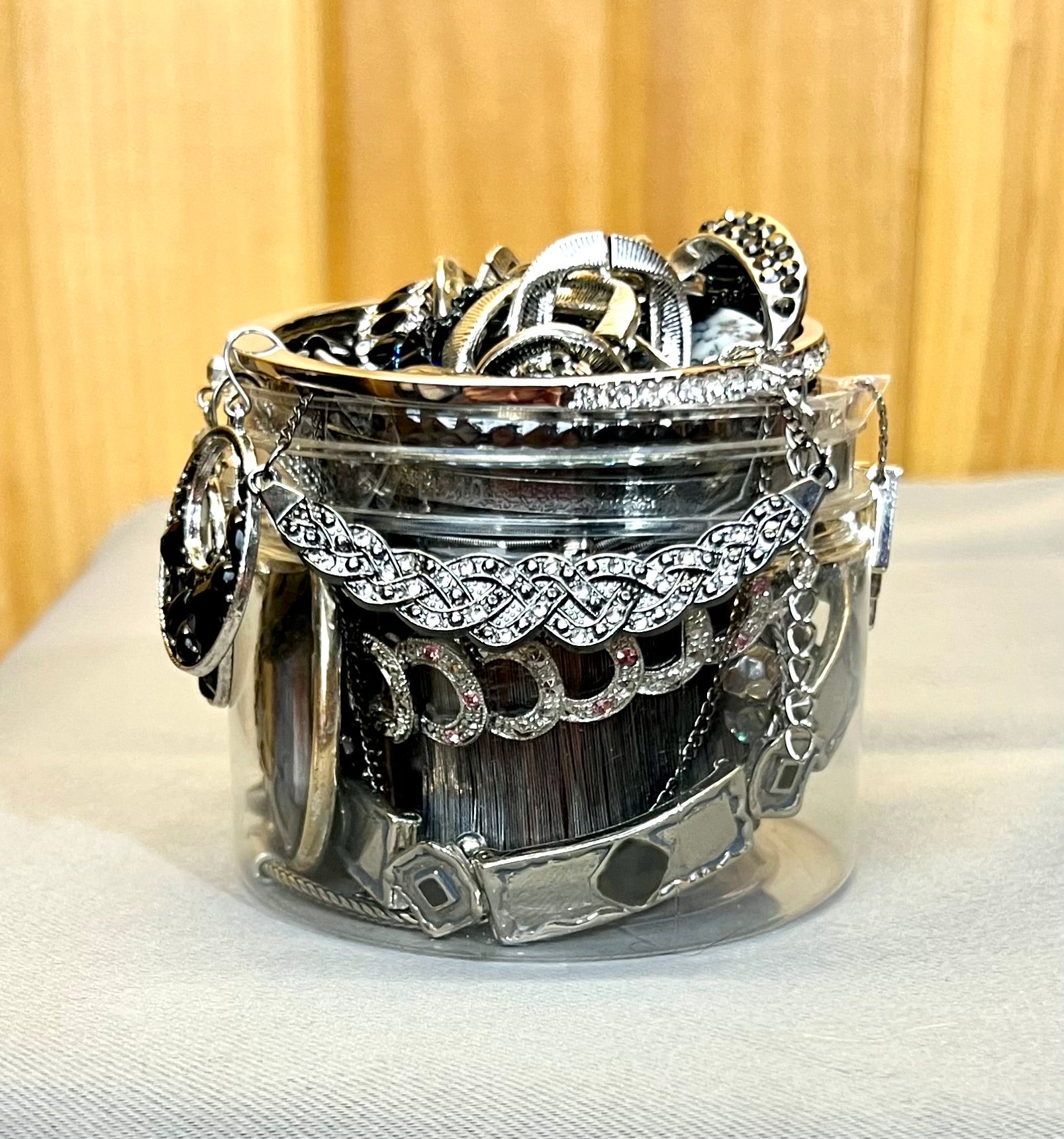 Unwrap the thrill of gorgeous jewelry with our hand-inspected and packed Jewelry JAR! Each jar is filled to the brim with an exciting variety of earrings, bracelets, necklaces, and rings – no two jars are exactly alike!