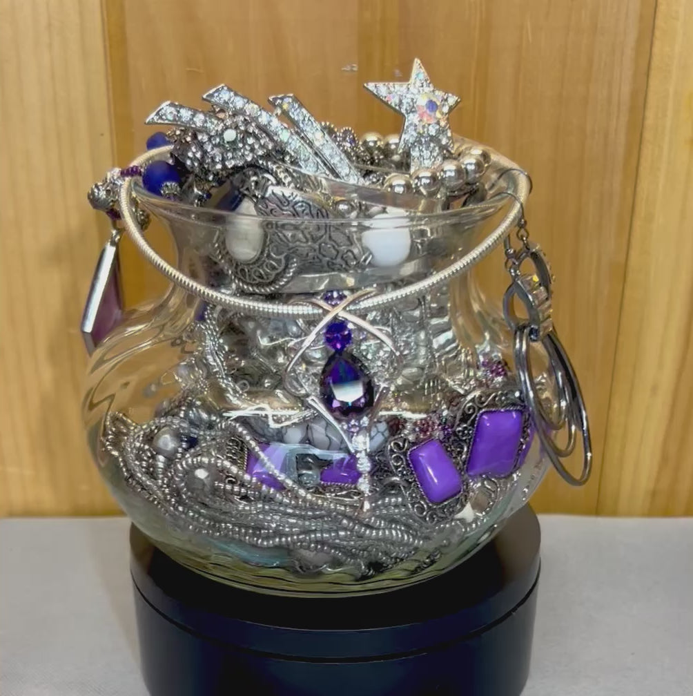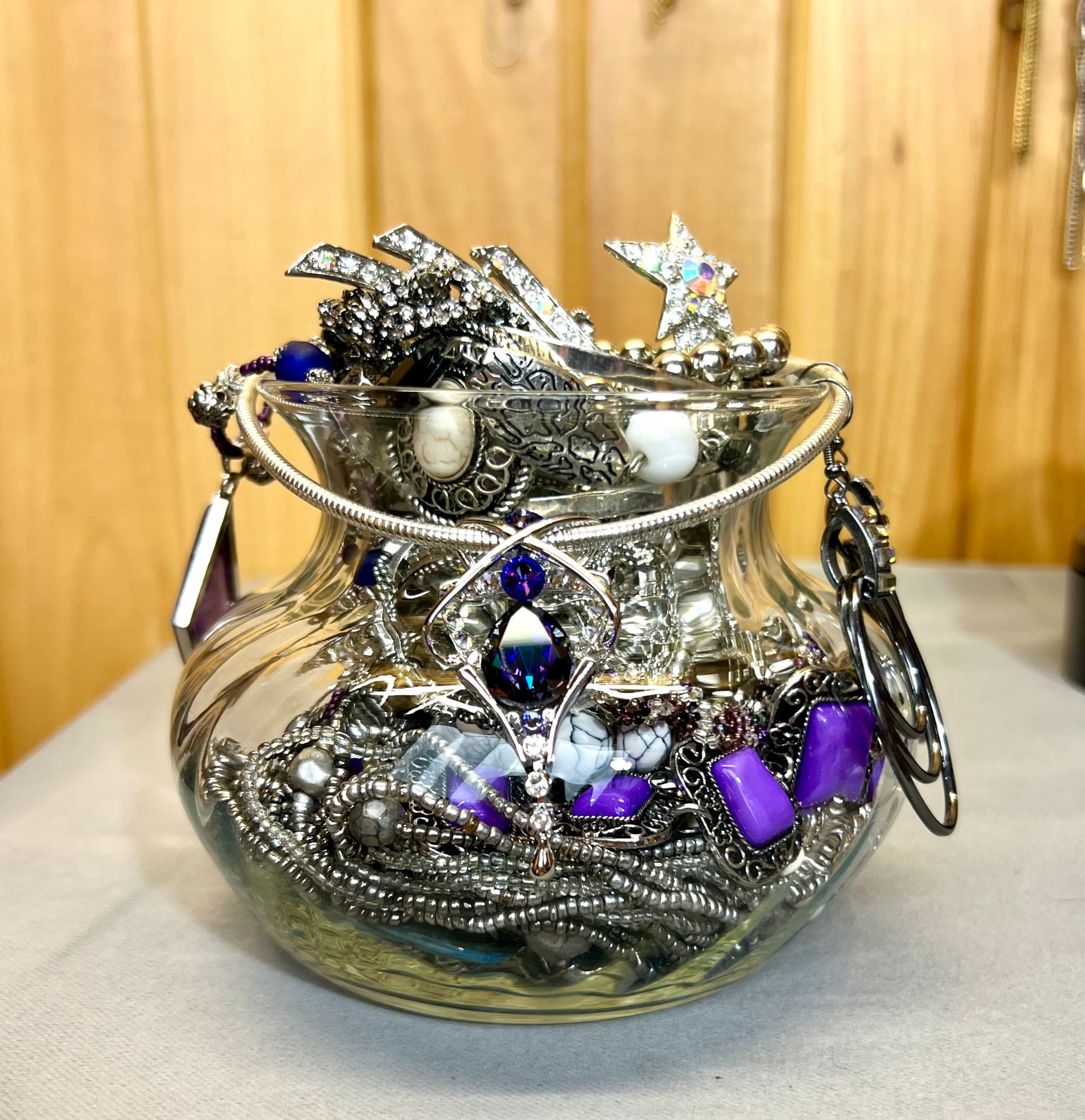 Unwrap the thrill of gorgeous jewelry with our hand-inspected and packed Jewelry JAR! Each jar is filled to the brim with an exciting variety of earrings, bracelets, necklaces, and rings – no two jars are exactly alike!