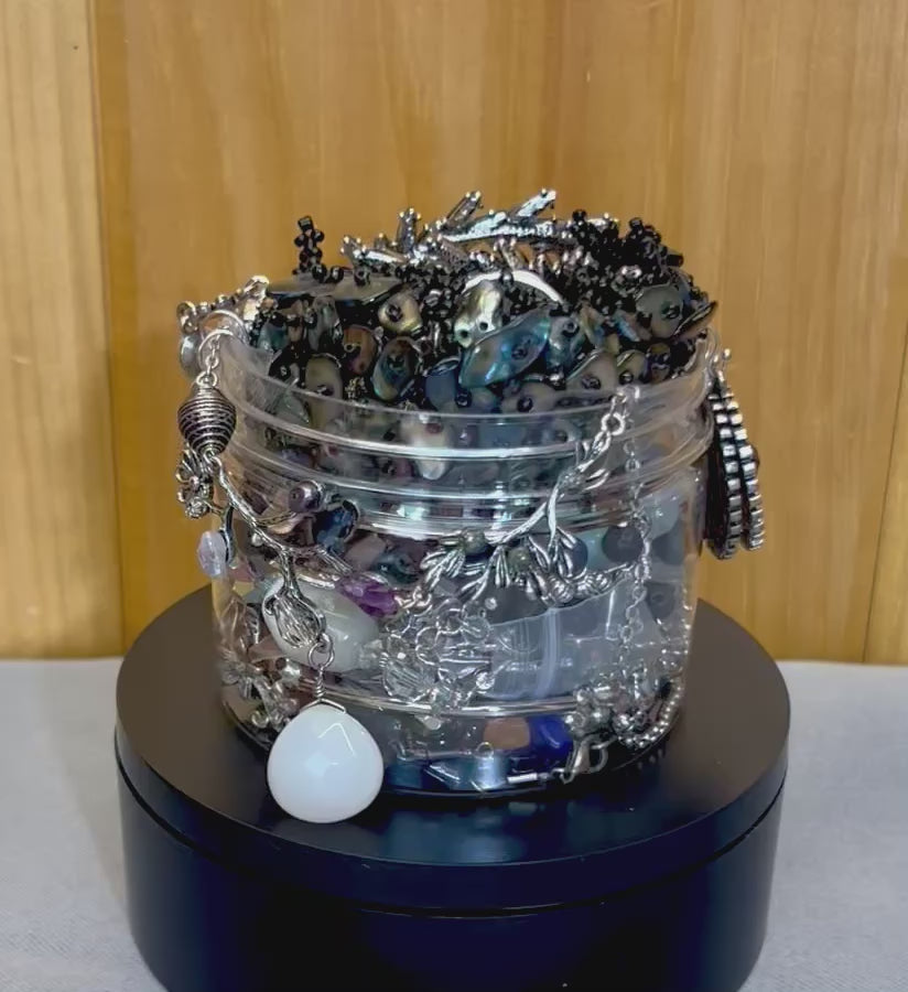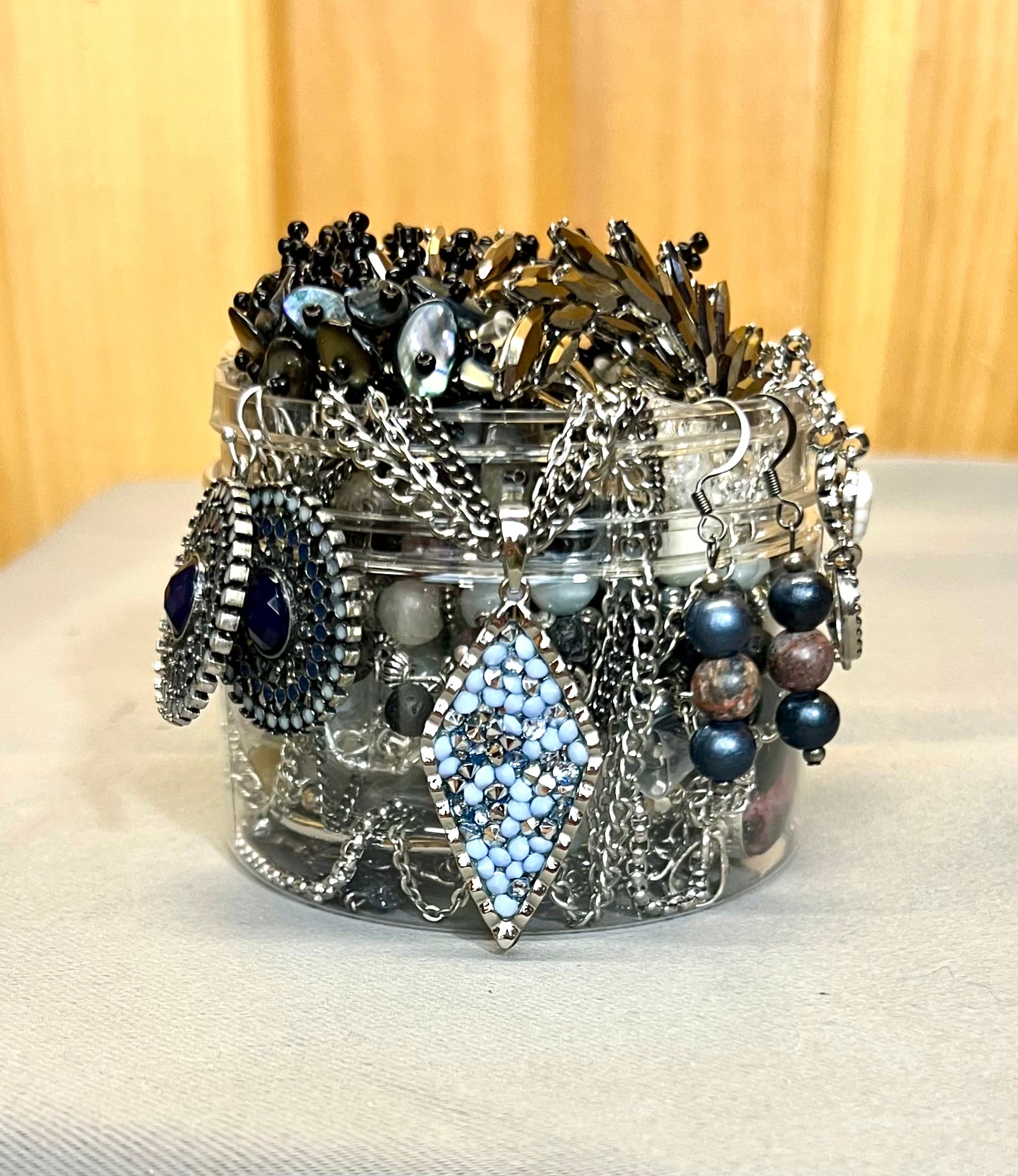 Unwrap the thrill of gorgeous jewelry with our hand-inspected and packed Jewelry JAR! Each jar is filled to the brim with an exciting variety of earrings, bracelets, necklaces, and rings – no two jars are exactly alike!