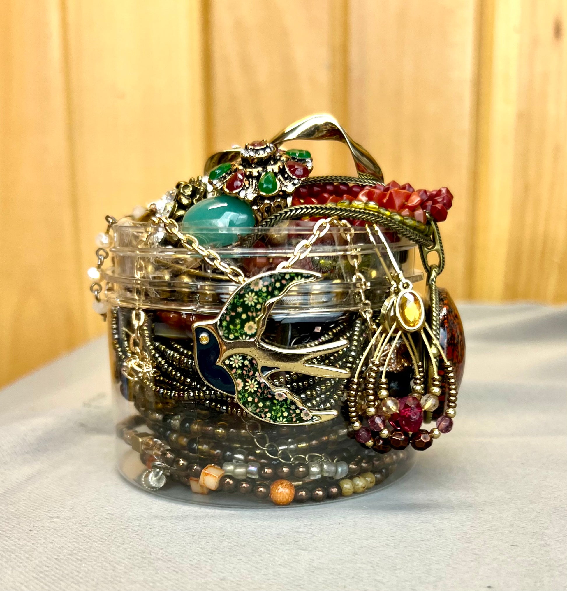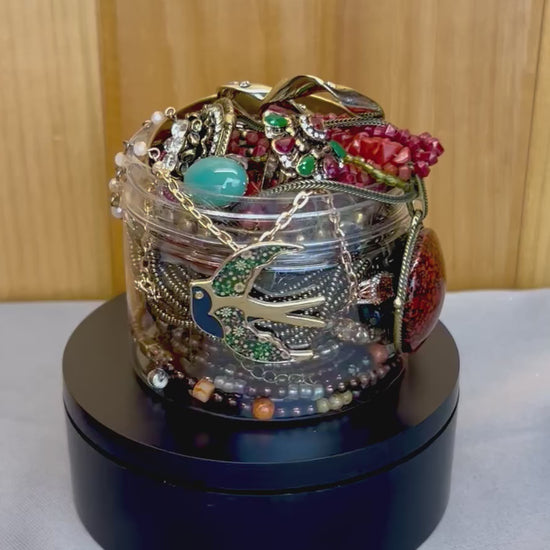 Unwrap the thrill of gorgeous jewelry with our hand-inspected and packed Jewelry JAR! Each jar is filled to the brim with an exciting variety of earrings, bracelets, necklaces, and rings – no two jars are exactly alike!